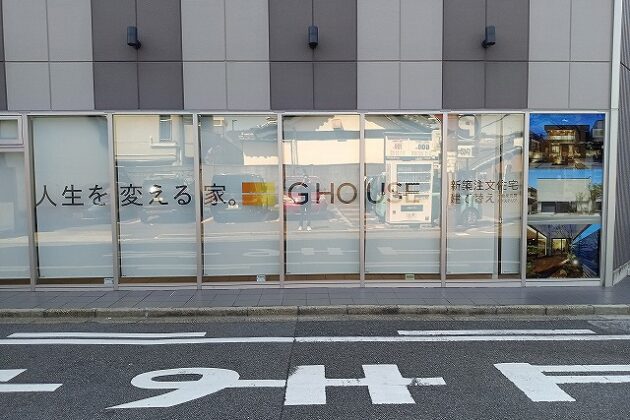 注文住宅メーカー ビルダー ガラス面シート ステンレス切り文字サイン デザインレイアウト製作【奈良県奈良市】