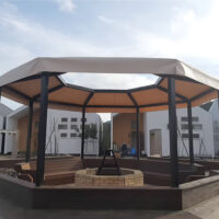 兵庫県内グランピング施設のオーニングテントを新設工事。