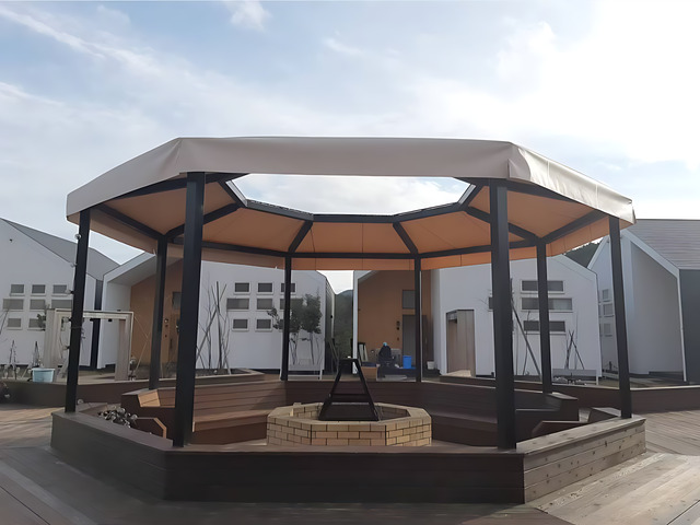 グランピング施設内BBQ場のテント貼り替え工事を京都で、
